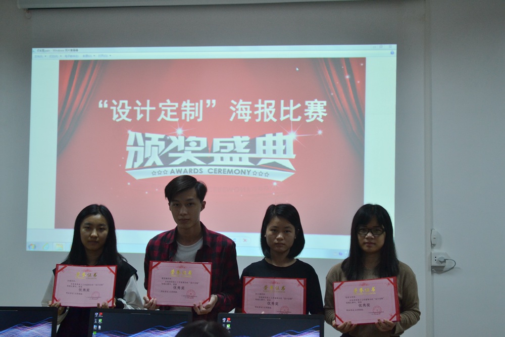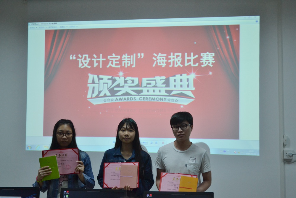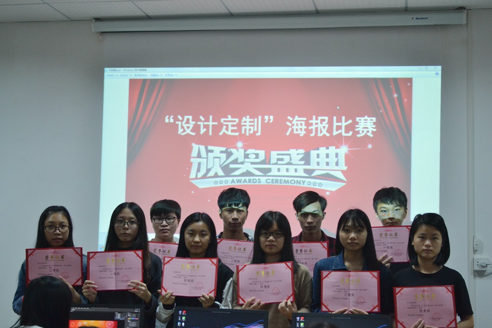 2016年11月22日下午,3044永利集团官网电商系美工工作室提高班举行了颁奖仪式,向在“‘设计定制’海报比赛”中积极创作作品、表现出色的肖伟锐等10位同学颁发了相应等级的获奖证书以及相应奖品。