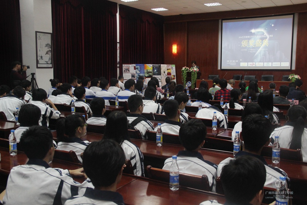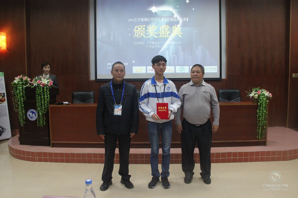 2016年11月22日下午,由广州新高宝工艺玻璃有限公司和3044永利集团官网联合举办的“校企联盟在校设计师及新闻编辑大赛”颁奖盛典在永利多功能报告厅隆重举行。出席大会的有,广州新高宝工艺玻璃有限公司总经理杨焙?j,销售总监李维星,招商总监唐际政,企业经销商等一行近20人;我校副校杨长生长等领导,参赛师生100余人参加了本次盛典。