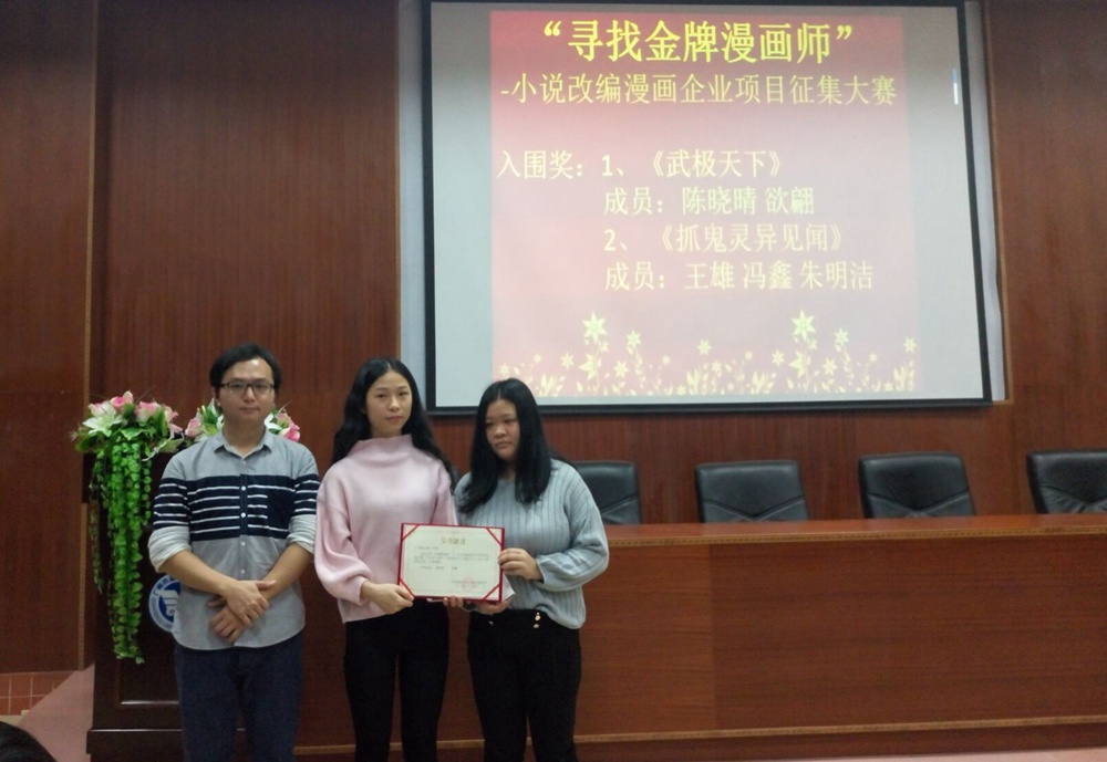 2016年12月13日上午,由广州漫游科技有限公司和3044永利集团官网联合举办的小说改编漫画企业项目征集大赛颁奖仪式在学校多功能报告厅隆重举行。永利学生陈晓晴,欲翩团队改编的《无极天下》,王雄,冯鑫,朱明浩团队改编的《抓鬼灵异见闻》获得了入围。