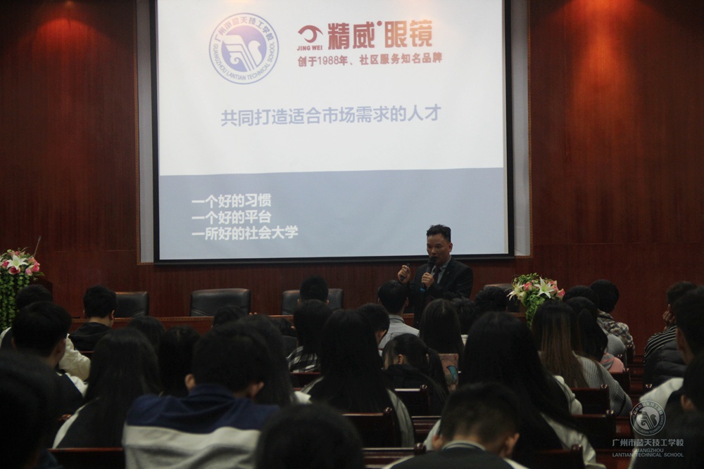 2016年12月14日下午,3044永利集团官网在多功能报告厅举办广州精威眼镜连锁企业校园交流报告会。精威眼镜企业邹文新总监和黄小国主管莅临本次交流报告会,同行的还有在精威公司工作的永利优秀毕业生陈琼玉同学。