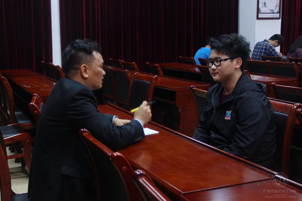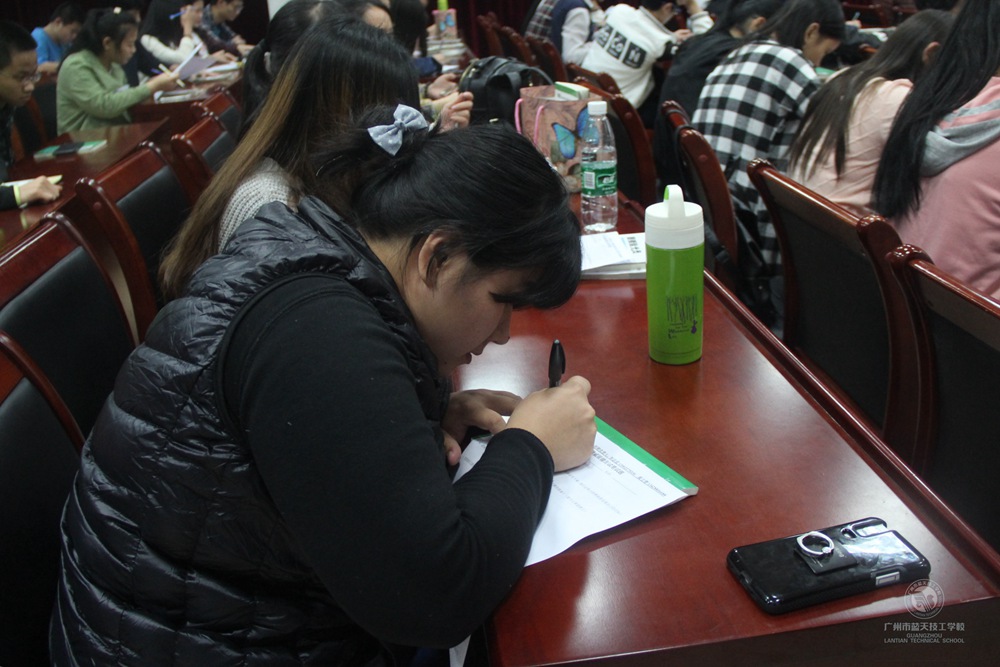 宣讲结束后,企业领导现场对15级眼镜专业的学生进行了应聘模拟笔试和面试。