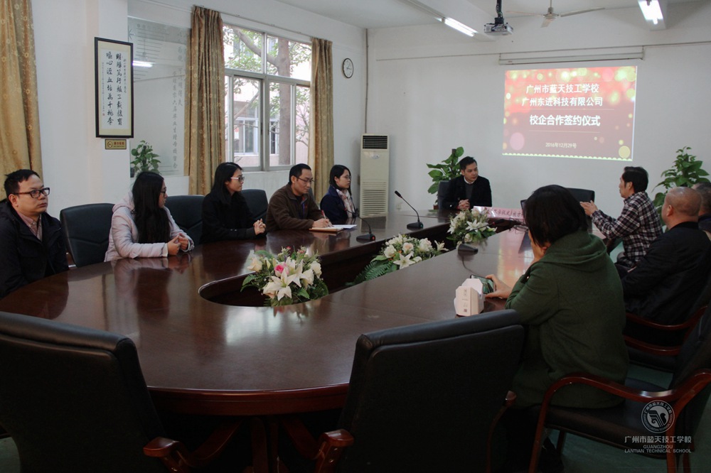2016年12月29日下午,广州东进科技有限公司与3044永利集团官网在学校会议室举行了签约仪式,双方将在未来就VR虚拟现实建模进行校企深度融合。广州东进科技温晋详总经理,学校杨长生副校长、丁海洋副校长;教务处程平处长及企业代表、教师代表参加了签约仪式。