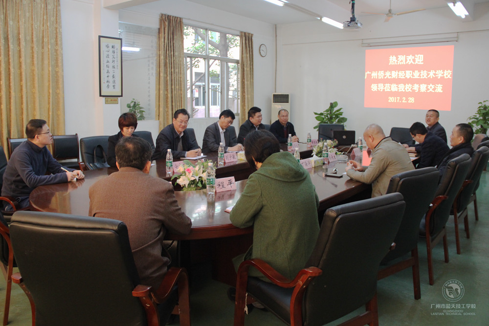 2017年2月28日上午,广州侨光财经职业技术学校陈副校长一行5人到访蓝天技校,永利领导杨长生、丁海洋、赖乾佑、谢齐桂等热情接待了各位来宾。双方围绕学校专业建设、校企合作与特色专业的配套建设工作等方面进行了交流。