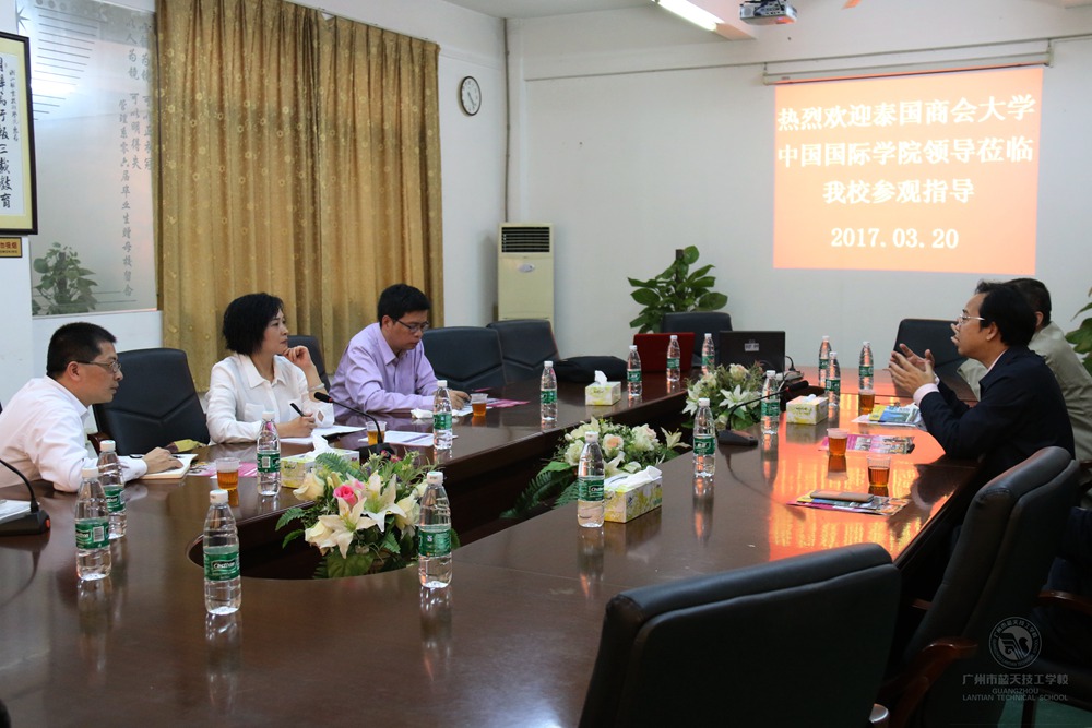2017年3月20日,泰国商会大学中国国际学院张萍院长一行莅临蓝天技校。双方就今后合作模式进行深度洽谈。学校董事长纪少游热情接待并一同观看了学校简介视频。