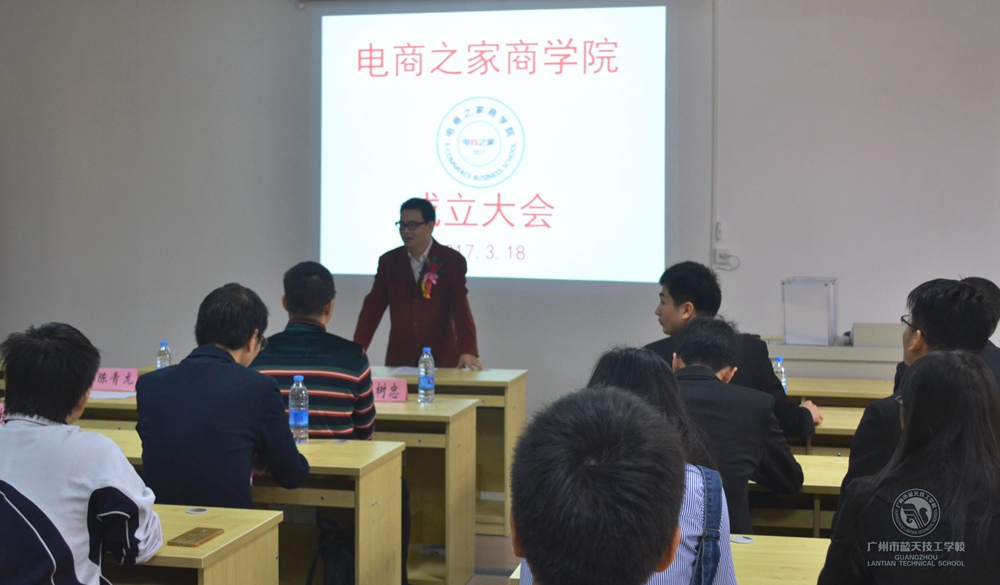 2017年3月18日上午,广州市蓝天技工学校电子商务产业系与电商之家合作共建的电商之家商学院在校园举行了隆重揭牌仪式。电商系主任苏树忠,电商之家总经理陈青龙、商学院首任院长何雯东等众多嘉宾出席了仪式,一同见证了这一重要时刻。