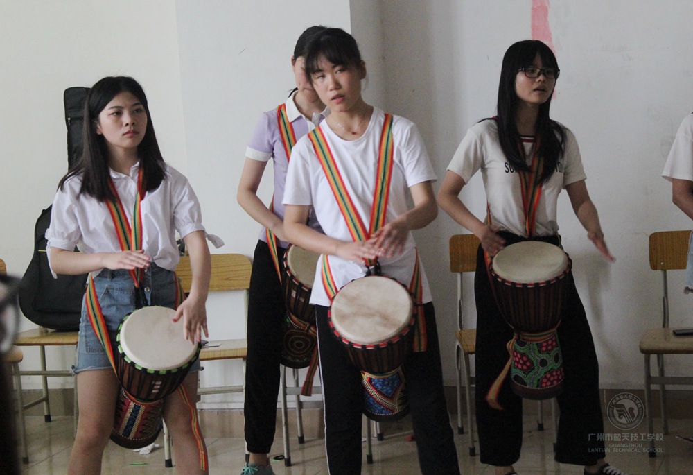 据非洲鼓授课老师TE老师介绍,非洲鼓是一种充满灵性的节奏型乐器,但是练习的时候是非常辛苦的,不仅节奏要紧凑,而且手会起茧。虽然练习非常辛苦,但是每一位学生都会被非洲热情奔放的原始气息感染,让她们的心态更加乐观向上。