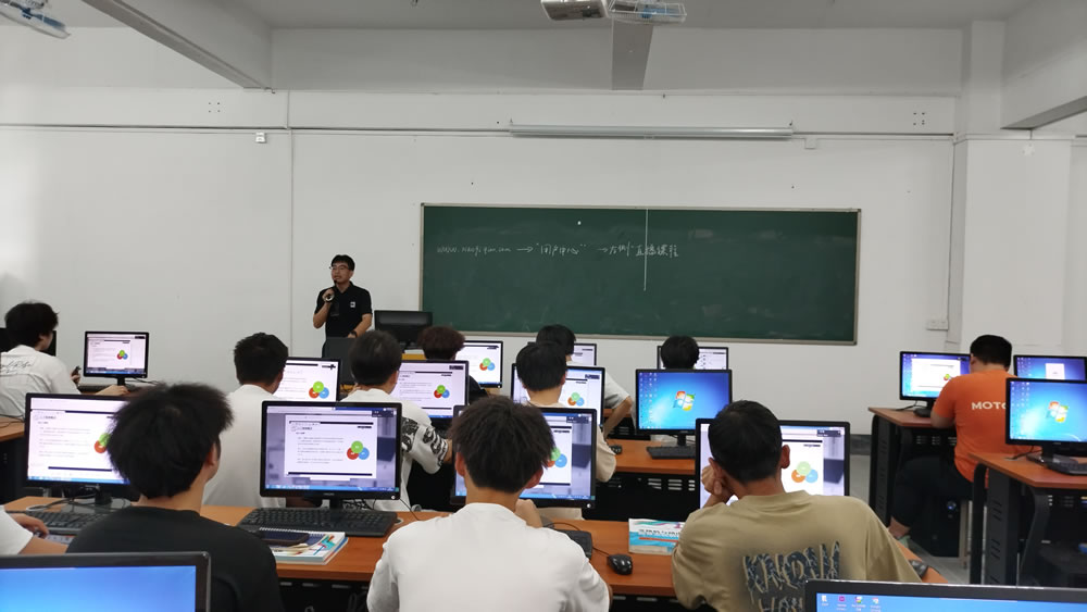 担任课程主讲老师的,是来自广州市ICT人才培训公共实训基地的罗世轩讲师。课上,罗老师首先介绍了人工智能的主要流派和发展历程,然后从图灵讲到当前国内领先的DeepSeek大模型。随后,他结合一些实际应用场景,具体指导学生如何使用DeepSeek等大模型工具进行文本分析和信息提取,以及通过chatexcel、办公小浣熊等AI工具进行实战演练,帮助学生掌握文本创作、AI绘图、PPT制作等技能,提高学习与工作效率。