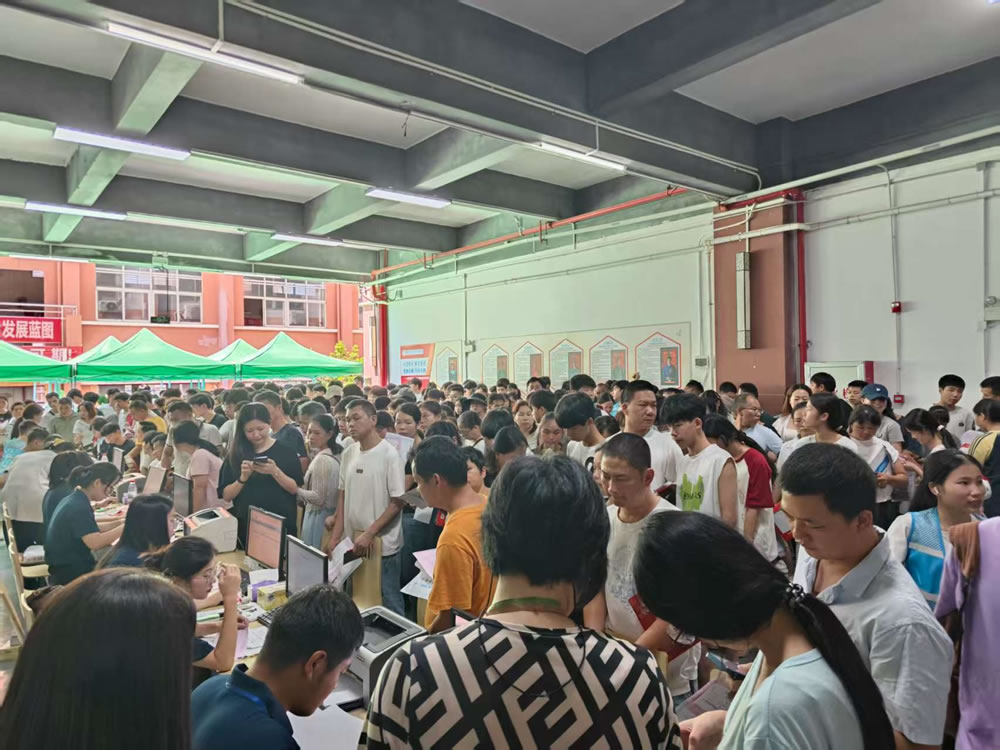 报到大厅被汹涌的人潮“包围”。新生或紧张整理报名材料,或小声交流对新专业的期待;家长在旁搭手递证件,默默守护。负责登记的老师指尖不停敲击键盘,以最快速度办理手续,确保流程顺畅。燥热空气里满是奔赴新起点的急切与热忱,这人头攒动的画面,正是青春逐梦最生动的注脚,每一声询问、每一笔登记,都在书写2025级新生的蓝天序章。