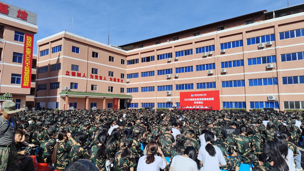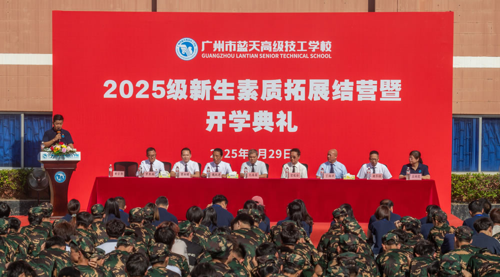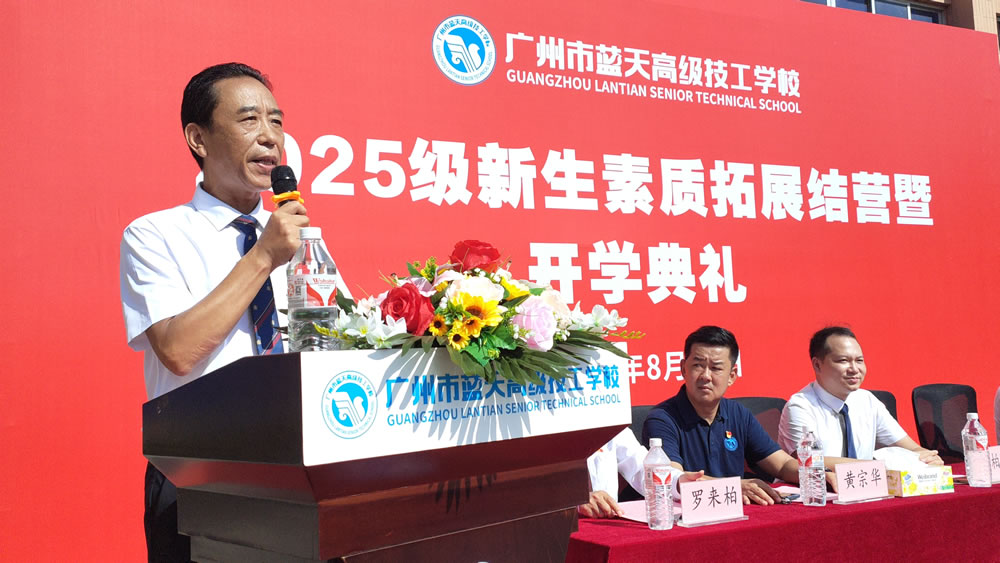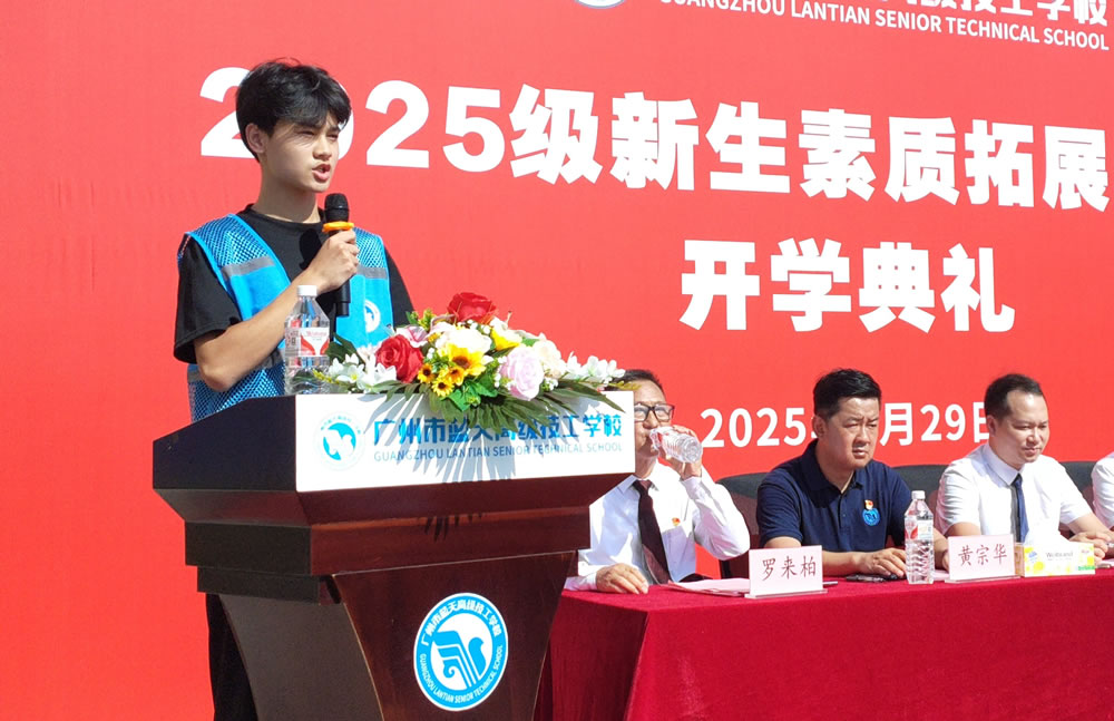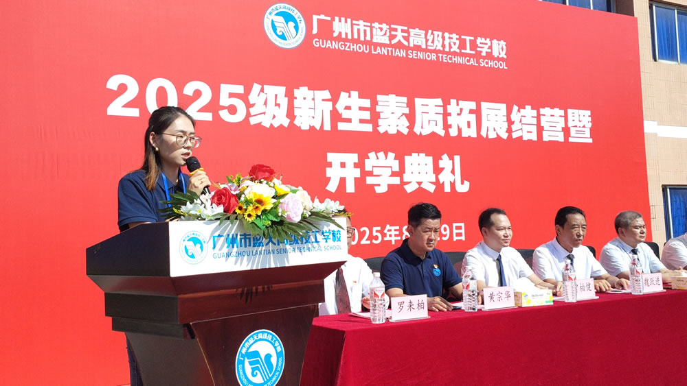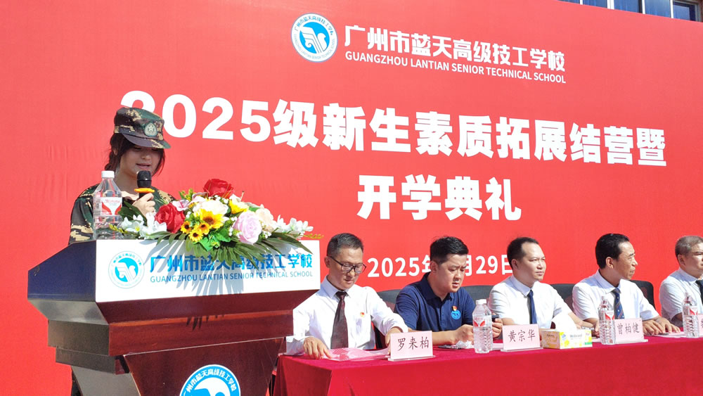 伴着庄严的国歌声,典礼正式启幕。学生处黄宗华处长首先作素质拓展训练总结。他指出,全体新生以顽强意志完成训练,内务整理水平显著提升,拓展一连等连队表现突出。特别表彰了形象设计中技2班黄嘉莉和新能源汽车检测与维修中技2班廖朝阳两位同学。黄嘉莉同学的乐观向上和感染力,廖朝阳同学的守时守信和坚韧不拔,为所有新学子树立了榜样。黄处长寄语新生:“五天的汗水是人生的序章,愿大家以更饱满的热情投入新征程!”