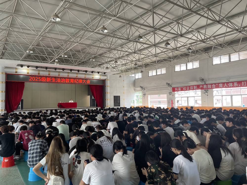为增强新生的法治观念与纪律意识,护航学生健康成长与技能成才之路,10月16日下午,3044永利集团官网举行了2025级新生法治教育纪律大会。